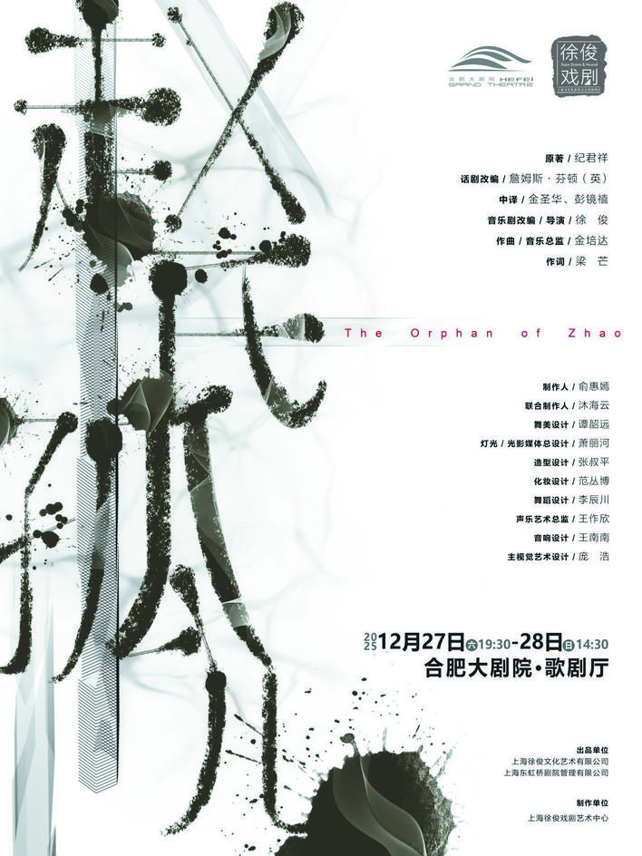 原创音乐剧《赵氏孤儿》将于12月27日至28日在合肥大剧院歌剧厅上演。音乐剧《赵氏孤儿》以元代剧作家纪俊祥的经典作品《赵氏孤儿》为蓝本,改编自皇家莎士比亚剧团詹姆斯·芬顿的同名戏剧。剧情围绕三个主要群体展开:显赫的赵氏家族、权贵大臣、新父亲刻意博士。在重重的命运锁链中,每个人都在寻找摆脱绝境的出路。该剧汇聚了一批顶尖演员登台,共同打造该剧。在舞台表现方面,该剧的综合语汇准确跟随主要矛盾,明确界定了“悲剧美学”。叙事结构独特,前半段“救孤儿”的绝望追求,后半段“复仇”的伦理质疑,营造出强烈的张力。名词还创新性地用程子灵魂的视角串联起整个故事,使情节布局紧凑有序,冲突逐渐增多,大大增强了故事表达的流畅度和情感渲染的穿透力,让观众更加身临其境地体验剧情的跌宕起伏。记者 夏伟